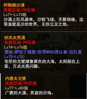 70-80级就是萨拉丁时代了,换进挂机点分别是:阿勒颇沙漠、纳杰夫、内德夫戈壁
