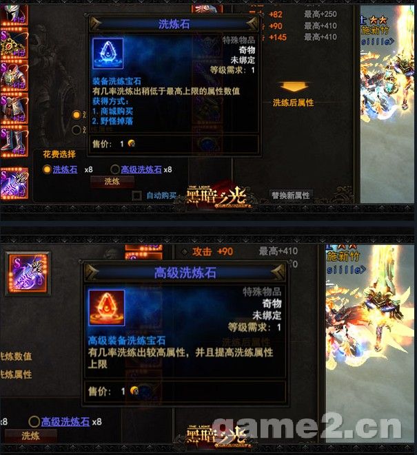 装备洗练也分为两种洗练模式,一种洗炼属性,另一种为洗炼数值。建议玩家先洗炼属性,把所有属性洗炼成需要的属性,再洗炼数值。洗炼数值时给玩家们提供一个技巧,洗炼数值时四个属性都会改变,玩家需要注意的是洗炼的数值比,四种变动值的总和若是正数,则有替换价值,反之,需要从新洗炼!