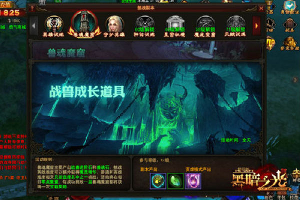 在17aiwan黑暗之光游戏中,当玩家等级达到45级之后就可以点击游戏界面上方的“挑战副本”图标,然后在里面找到兽魂魔窟副本,点击即可开启该副本界面。在正式进入魔窟杀怪前,系统将会让玩家选择进入的难度。一般是两种难度,一为普通难度,二为英雄难度。锁定难度后,当日不能再变更难度选