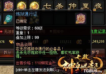 需要注意的是,只有等级达到60级以上的玩家才可以进入哦。每一层的炼狱都是有一个BOSS存在的,只有BOSS才会掉落高等级的装备、物品。而小怪呢则会掉落炼狱通行证,这个是用来进入下一层炼狱的。