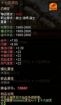 七杀16、17级灵石属性,七杀16、17级灵石介绍。消耗灵元可在土城灵石大仙处将15级灵石升级为16、17级灵石,可获得强大属性。