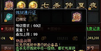 需要注意的是,只有等级达到60级以上的玩家才可以进入哦。每一层的炼狱都是有一个BOSS存在的,只有BOSS才会掉落高等级的装备、物品。而小怪呢则会掉落炼狱通行证,这个是用来进入下一层炼狱的。