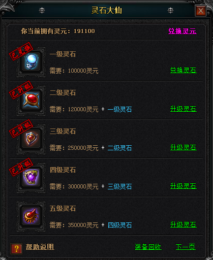灵元可以通过回收装备获得,还可以通过绑元购买“灵元令牌(中)”提高,每天可以买5个,一共提升5万点。