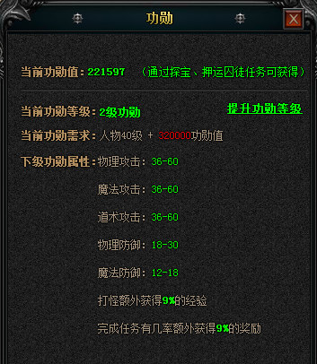 功勋可以通过探宝和做押镖任务获得,探宝要花钱,所以就不推荐给大家了,押镖记得下午3点的时候绑元购买“囚徒刷新符”刷出牛魔王,这样的话功勋可以获得多一点儿。