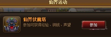 在神仙道里伏魔塔是仙界活动。所以必须要等到仙界开启了才能进。玩家打开仙界点击进入神仙道仙界伏魔塔。