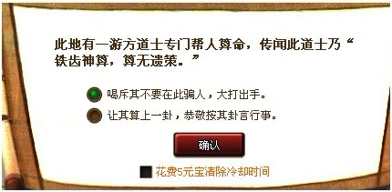 让其算上一卦,恭敬按其卦言行事?(铜钱,声望)