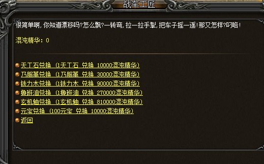 武易战车维修需要混沌精华,可以在土城的战车NPC处使用材料兑换。