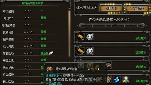1、每日活跃度到达70,可以免费获得一个地宫钥匙自选盒,选择适合自己的地宫钥匙。