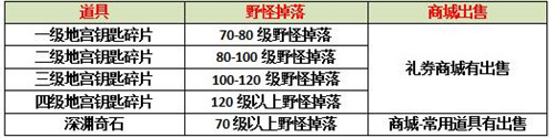 2、通过游戏中获得的各级地宫钥匙碎片和深渊奇石合成。