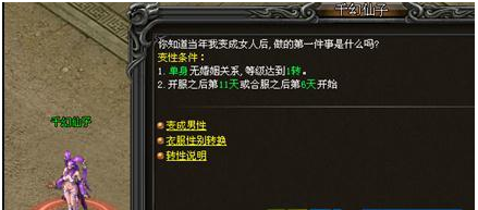 2.开服之后11天或合服后第6天后可进行变性。