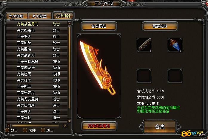 我们在武易游戏里打开天兵神器就可以操作打造完美的武器了。不过打造完美的武器是需要收集足够的材料才可以进行打造的哦。