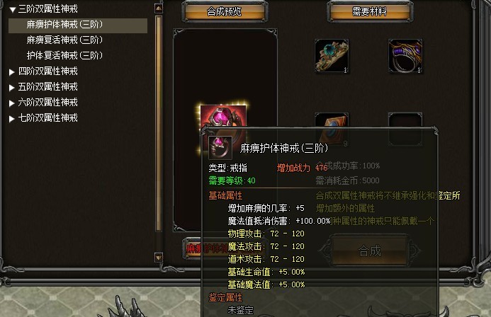 特戒分成麻痹戒指、护身戒指、复活戒指等等,特戒最主要的特点就是能够升级并且完全没有职业上的限制,也就是说任何职业任何等级的玩家都可以装备上任何一种特戒,这种设定真得很给力。