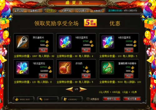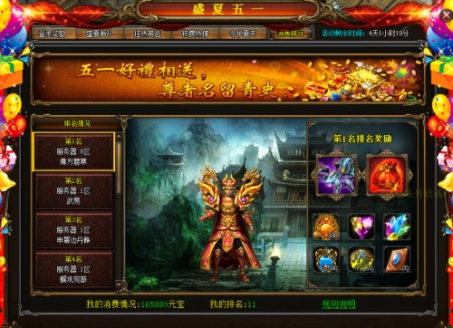 活动详情:轻松充一充,大礼送不停!活动期间充值达到指定数额的元宝,即可获得超值大礼,机会仅此一次哦!