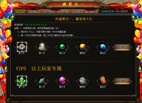a、登陆奖励。庆盛夏五一,赢登录大礼
