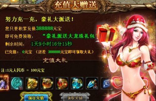 活动简介:活动期间,累计充值达到指定数额元宝,即可获赠特惠豪华大礼包。
