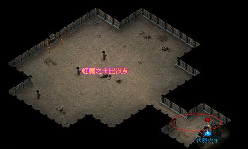 虹魔之主卡位也有技巧哦,打虹魔之主,需要把BOSS拉到红圈的位置。这个位置可以避免小怪的骚扰,同时也可以避免攻击到小怪身上。虹魔之主有一个特点,每隔一段时间就会消失,然后不知道在哪个方位出现并且发动攻击,这对玩家来说是一个很大的困扰。但是拉到红圈的位置的话,BOSS消失之后,就会自动跑回来,而且只有一个方位,所以可以很好的锁定BOSS。