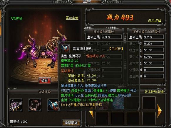 坐骑装备需要用坐骑点来购买,一件装备是2500点。如果要升级坐骑装备,首先你得购买兽灵精华,第一次升级需要20个,第二次需要50个,兽灵精华350点一个。然后购买一件和你要升级的装备一样的坐骑装备,比如你想升级马鞍,就必须有两个一样等级的马鞍。 关于武易坐骑装备的获取和升级,小编就介绍到这里了,希望给大家带来帮助哦!!