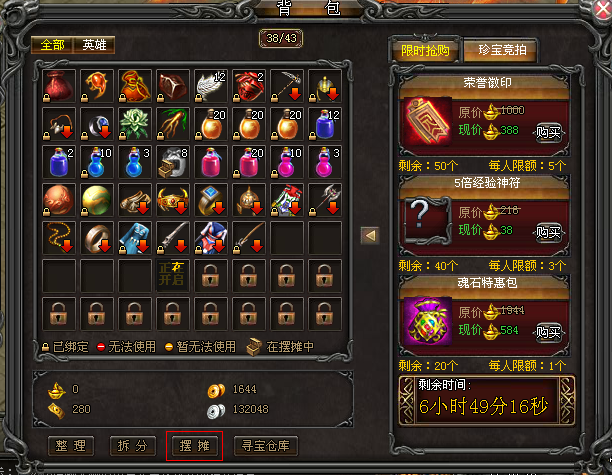 关于摆摊的操作还是很简单的,大家有什么不需要的装备可以用这种方式把卖掉哦!!