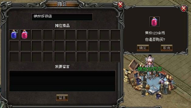 如果你是需要购买他人摆摊的商品,只需单击商品的图标,再确认交易内容即可完成本次交易。你还可以在摊位下方的留言区进行留言,与买家互动,讨价还价。